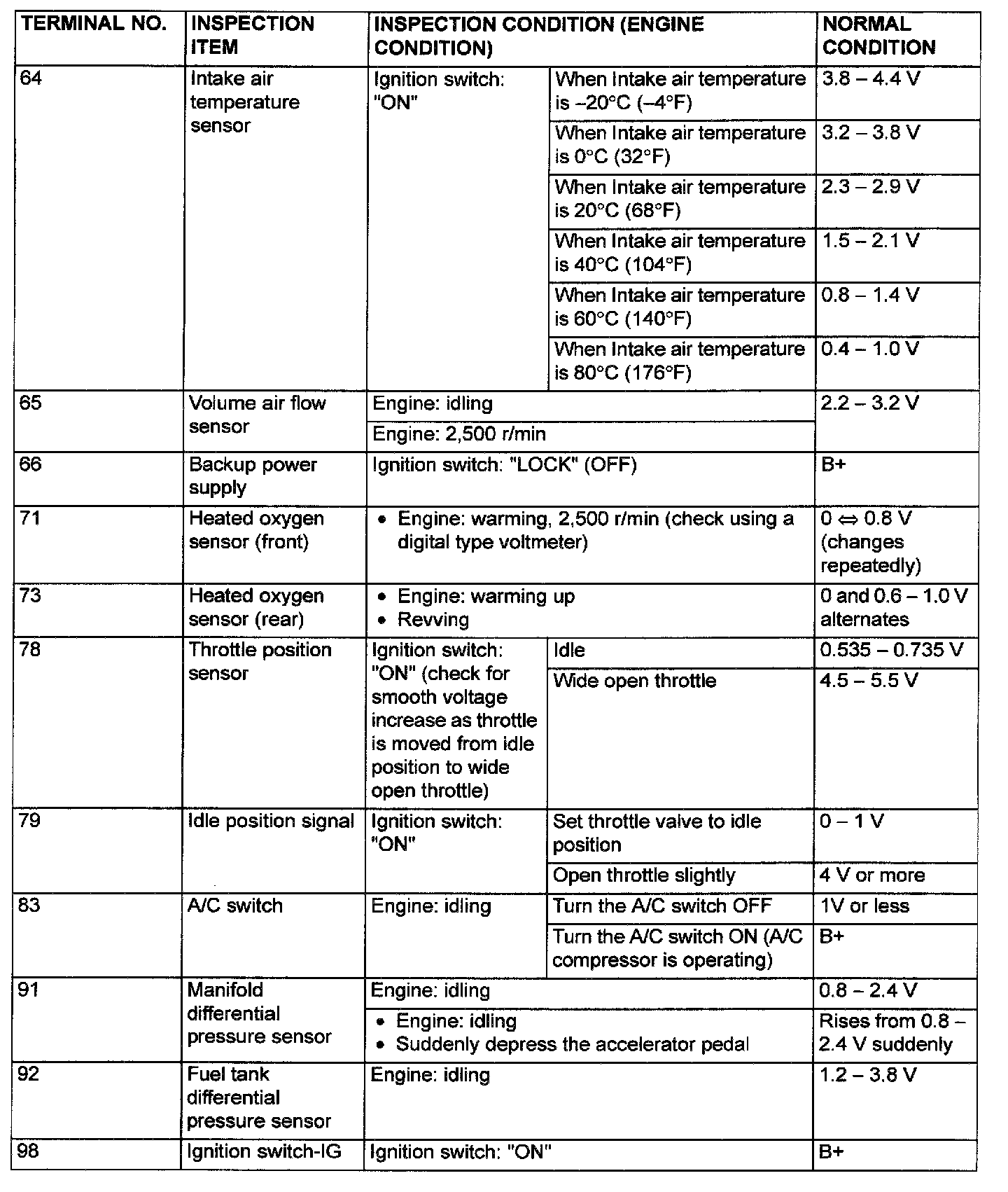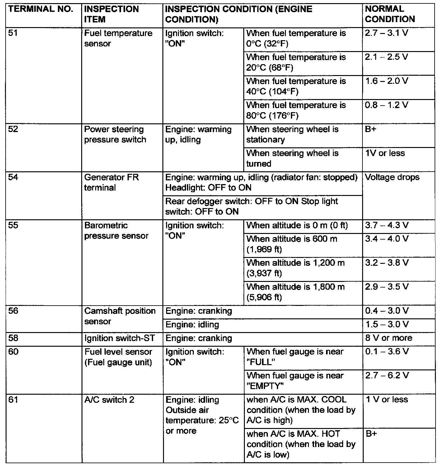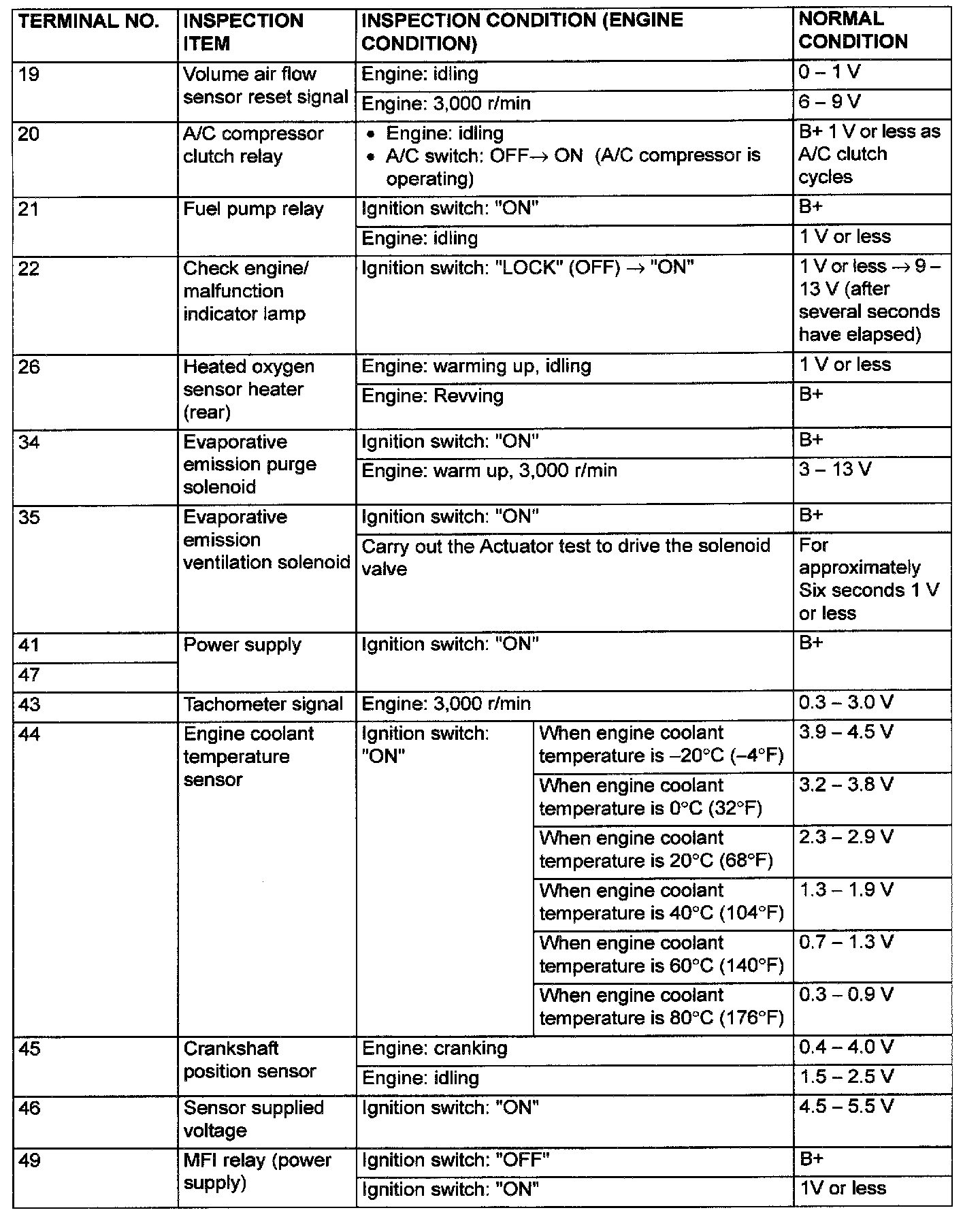 PCM Harness Side Connector Terminal Arrangement And Terminals: