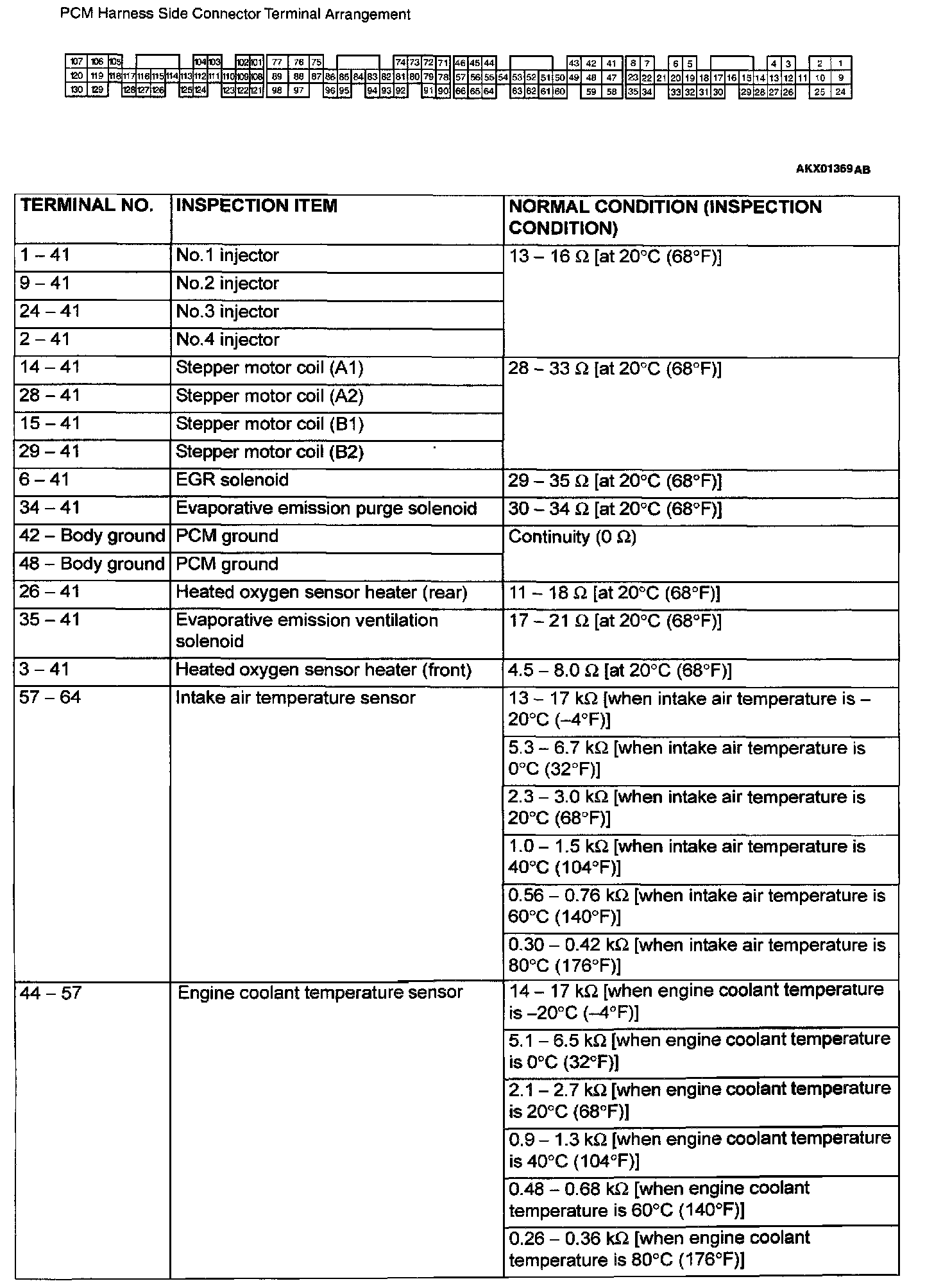 PCM Connector Terminal Arrangement And Terminals Part 1: