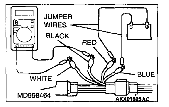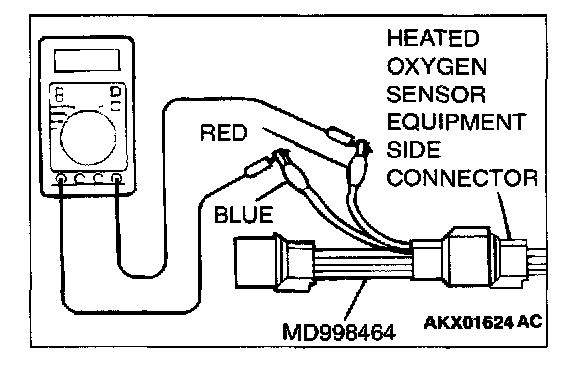 1. Disconnect the heated oxygen sensor connector and connect special tool MD998464 to the connector on the heated oxygen sensor side.