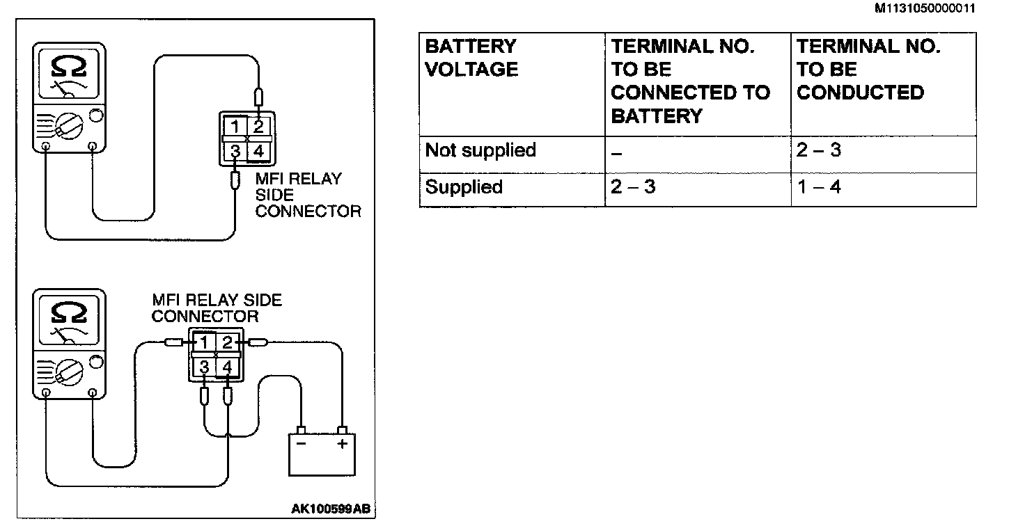 Multiport Fuel Injection (MFI) Relay Continuity Check:
