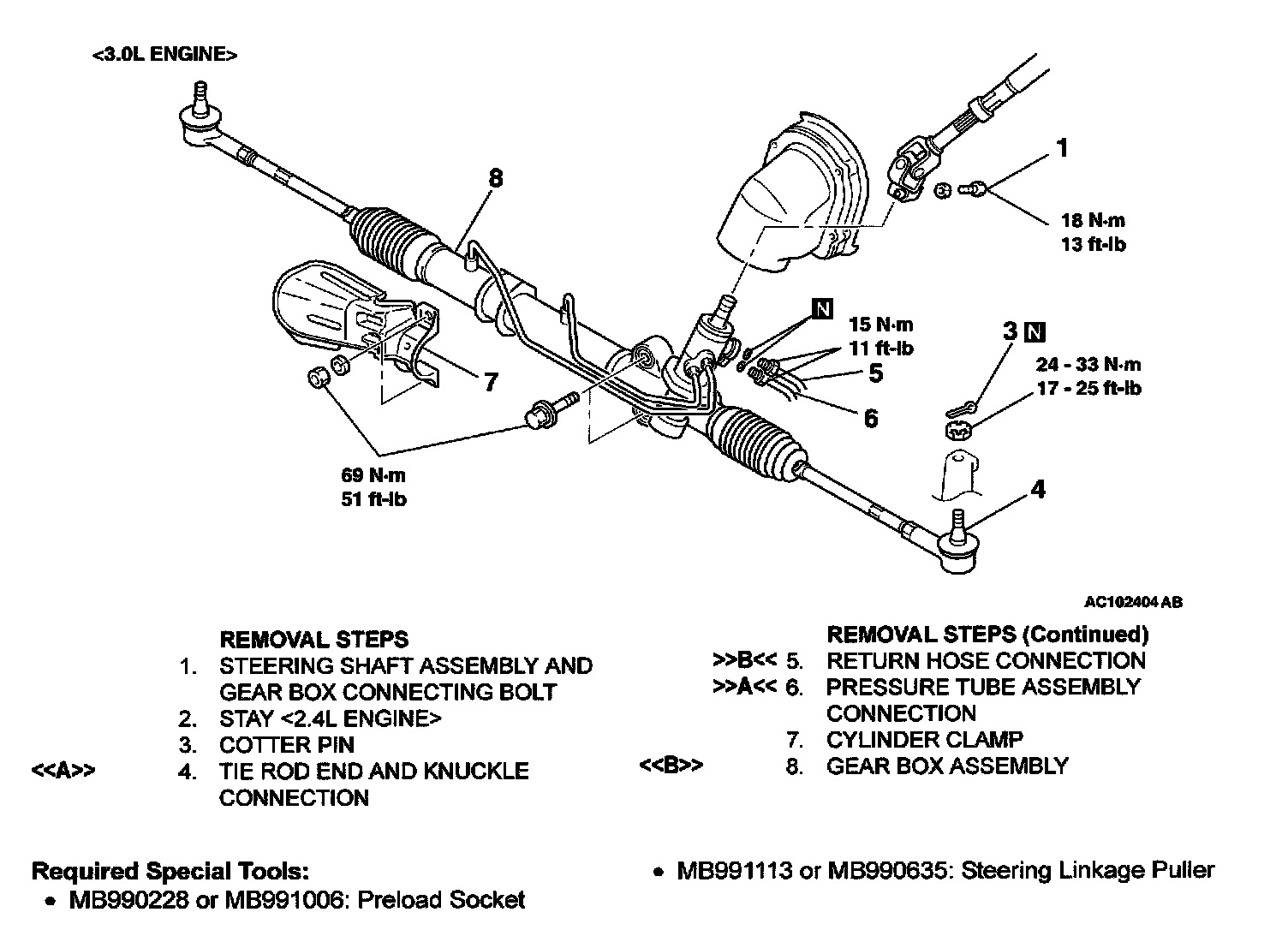 POWER STEERING GEAR BOX ASSEMBLY REPLACEMENT AND OVERHAUL W/ RELATED COMPONENTS