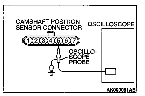 2. Connect the oscilloscope probe to camshaft position sensor connector terminal 5.