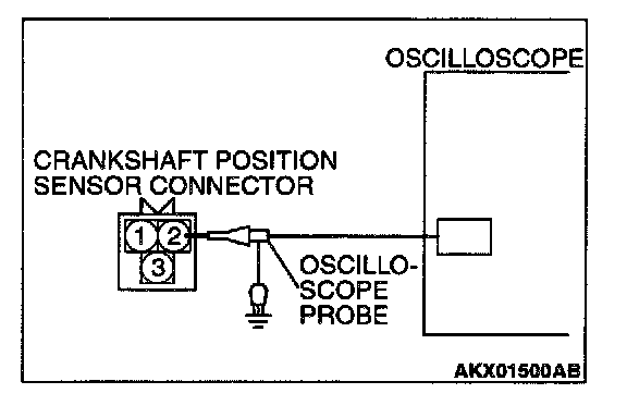 4. Connect the oscilloscope probe to crankshaft position sensor connector terminal 2 (black clip of special tool).