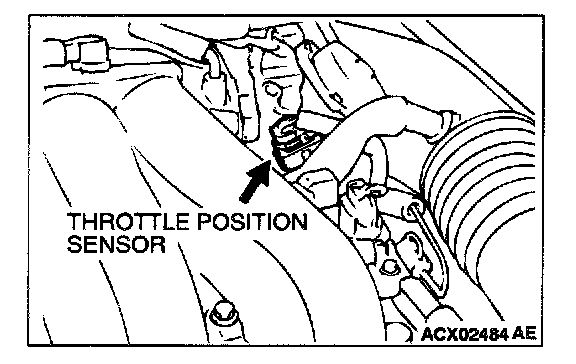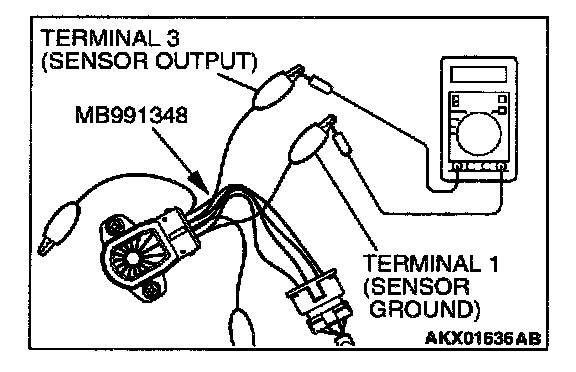 1. Disconnect the throttle position sensor connector, and connector special tool MB991348 in between. (All terminals should be connected.)