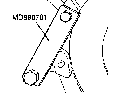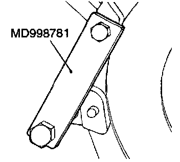 1. Lock the flywheel or drive plate in position using the special tool MD998781 shown in the illustration.