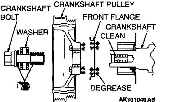 2. Clean the bolt hole in crankshaft bolt and crankshaft pulley's seating surface.