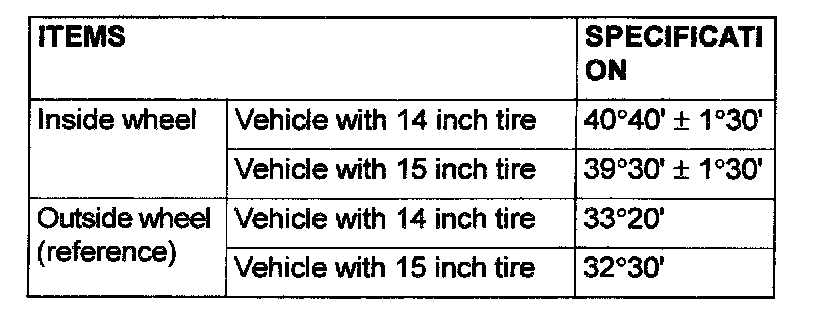 1. Place the front wheel on a turning radius gauge and measure the steering angle.