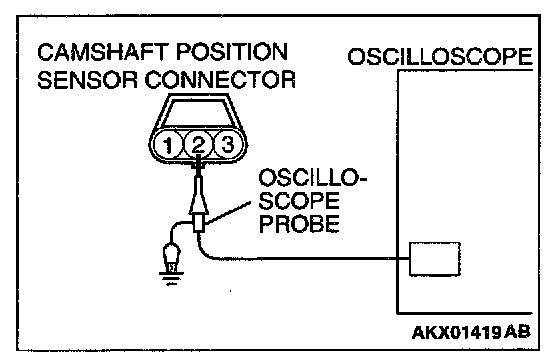 2. Connect the oscilloscope probe to camshaft position sensor connector terminal 2.