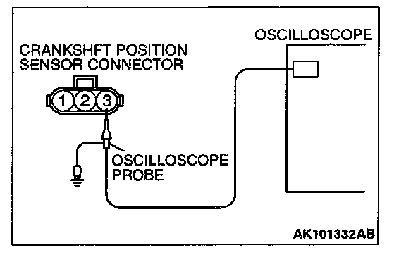 4. Connect the oscilloscope probe to crankshaft position sensor connector terminal 3.