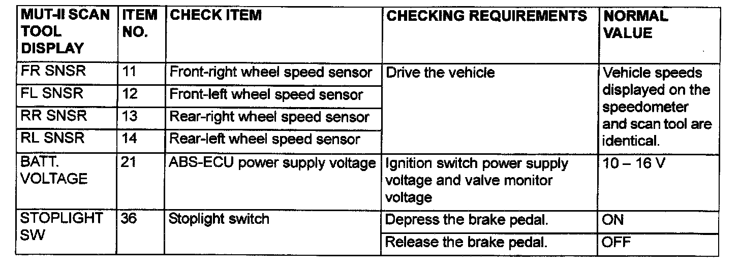 These items can be read by the scan tool from the ABS-ECU input data.