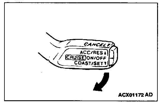 NOTE: When the vehicle speed reaches the low limit [approximately 40 km/h (25 mph)] during deceleration, the auto-cruise control will be cancelled.