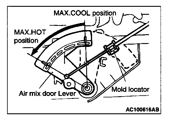 2. Set the heater unit's air mix door lever to the MAX HOT position (turn the damper lever as the left illustration) and attach the cable.
