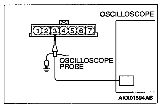 2. Connect the oscilloscope probe to volume air flow sensor connector terminal 3.