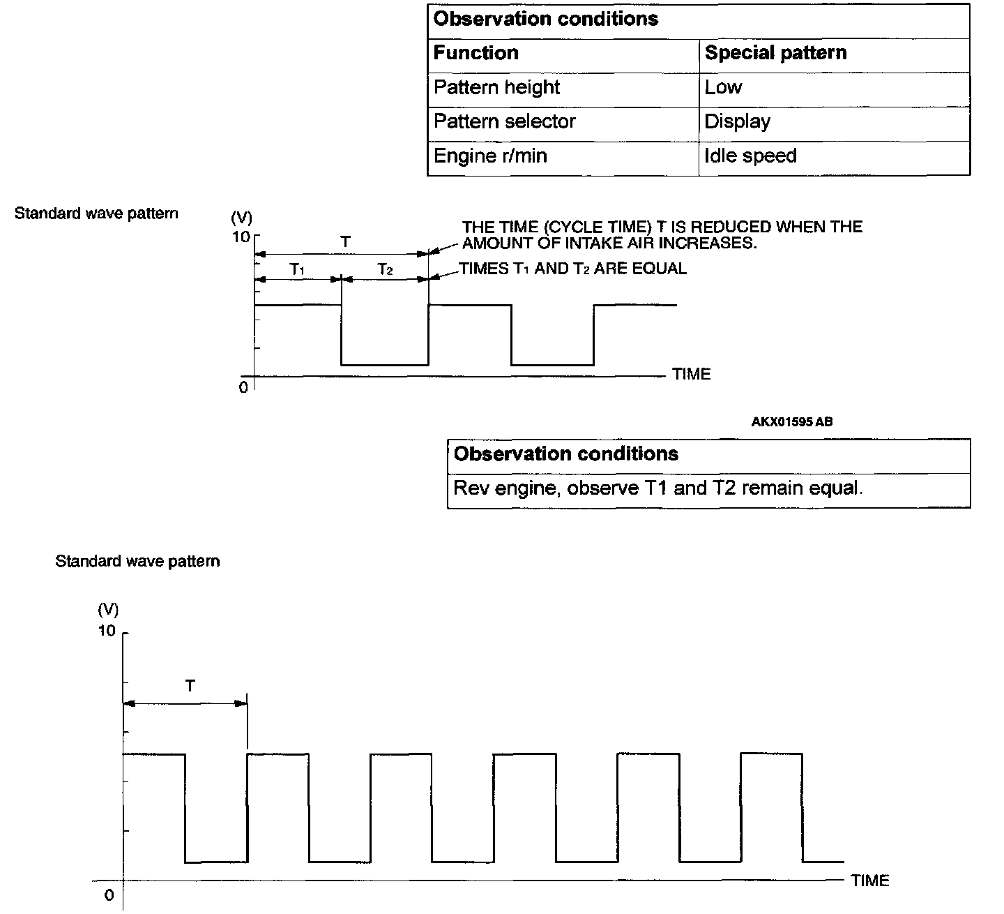- Unstable wave pattern with non-uniform frequency. An ignition leak will distort the wave pattern temporarily, even if the volume air flow sensor is normal.