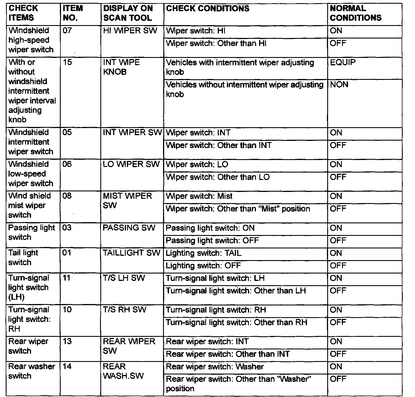 2. The following input signals can be checked by using the scan tool and the SWS monitor kit.