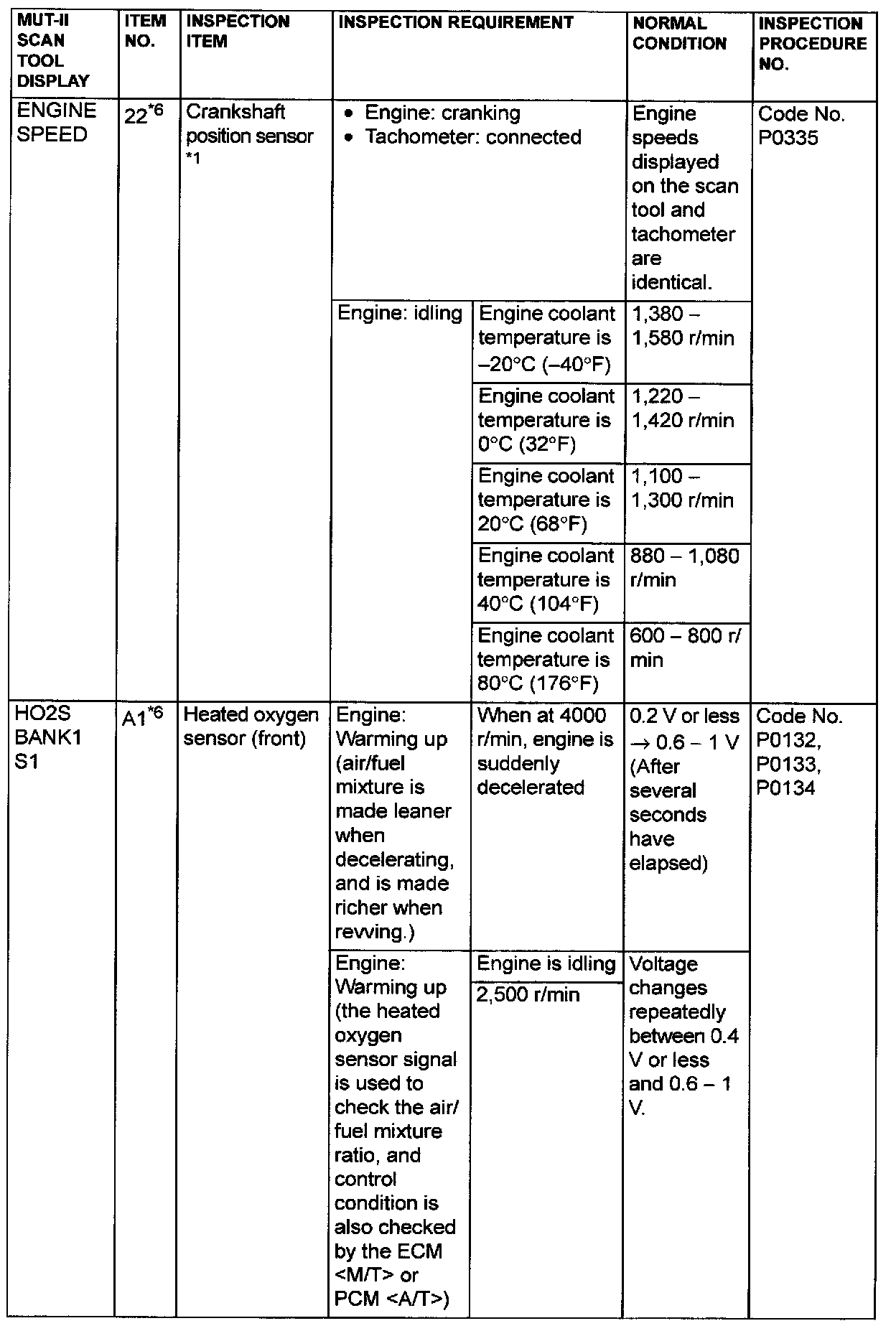 NOTE: *6: GST items. [Data list items consist of MUT-II items and GST items. GST items can be accessed through the use of a general scan tool (GST). When MUT-II (MB991502) is used, MUT-II items appear alphabetically; then, GST items appear alphabetically The black and white characters of the GST items are inverted from the MUT-II items]