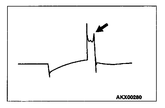 NOTE: Because of the two-cylinder simultaneous ignition system, the waves for two cylinders in each group appear during wave observation. However, wave observation is carried out for the cylinder (Number 1 or 3) with the spark plug cable which has been clamped by the secondary pickup.