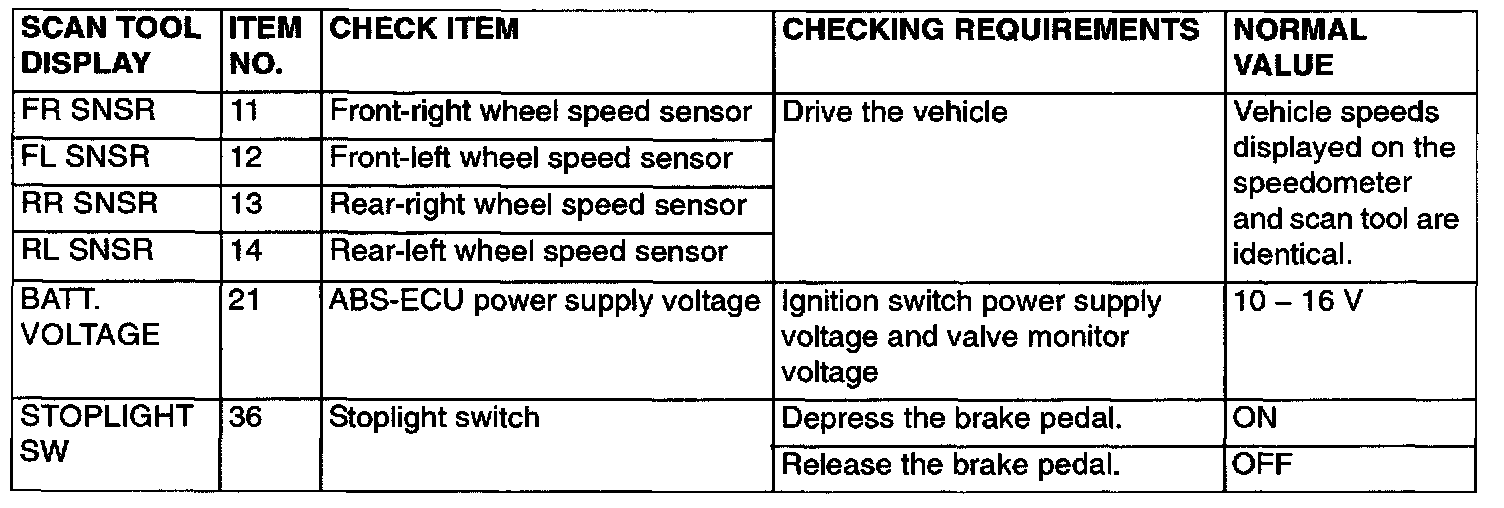 The data input from all sensors and switches can be read using the scan tool.