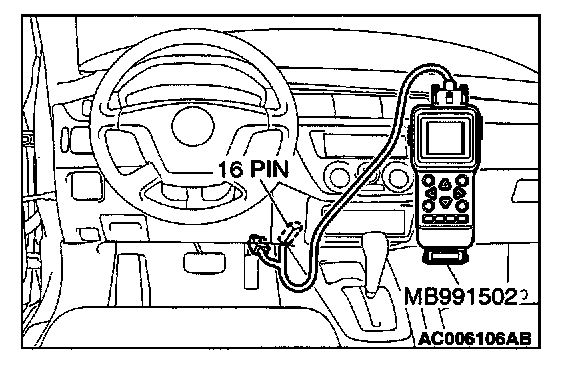1. Connect scan tool MB991502 to the data link connector (16-pin).