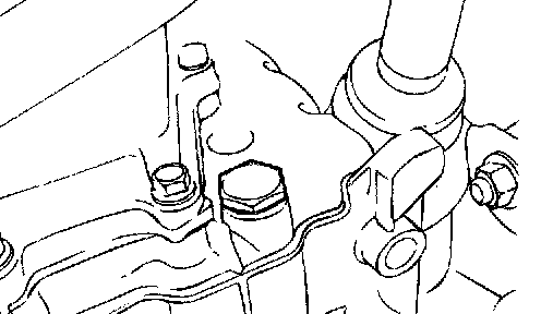 1. Disconnect the hose shown in the illustration, which connects the transaxle and the oil cooler (inside the radiator). Place a container under the hose to collect the discharge.