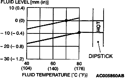 12. Drive the vehicle until the A/T fluid temperature rises to the normal temperature [70 - 80°C (158 - 176°F)], and then check the A/T fluid level again. The A/T fluid level must be at the "HOT" mark.