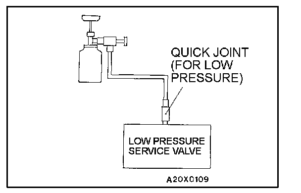 CORRECTING LOW REFRIGERANT LEVEL IN CASE THE SERVICE CAN IS USED1. Install the charge valve with the handle turned all the way out (valve open) of the service can.