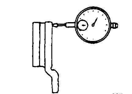 3. Place a dial gauge approximately 5 mm (0.2 inch) from the outer circumference of the brake disc, and measure the runout of the disc.