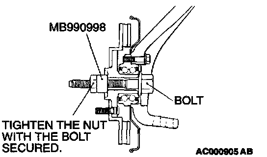 2) Attach special tool MB990998 to the front hub assembly as shown in the illustration, and tighten it to the specified torque.
