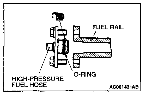 1. When connecting the high-pressure fuel hose to the fuel rail, apply a small amount of new engine oil to the O-ring and then insert the high-pressure fuel hose, being careful not to damage the O-ring.