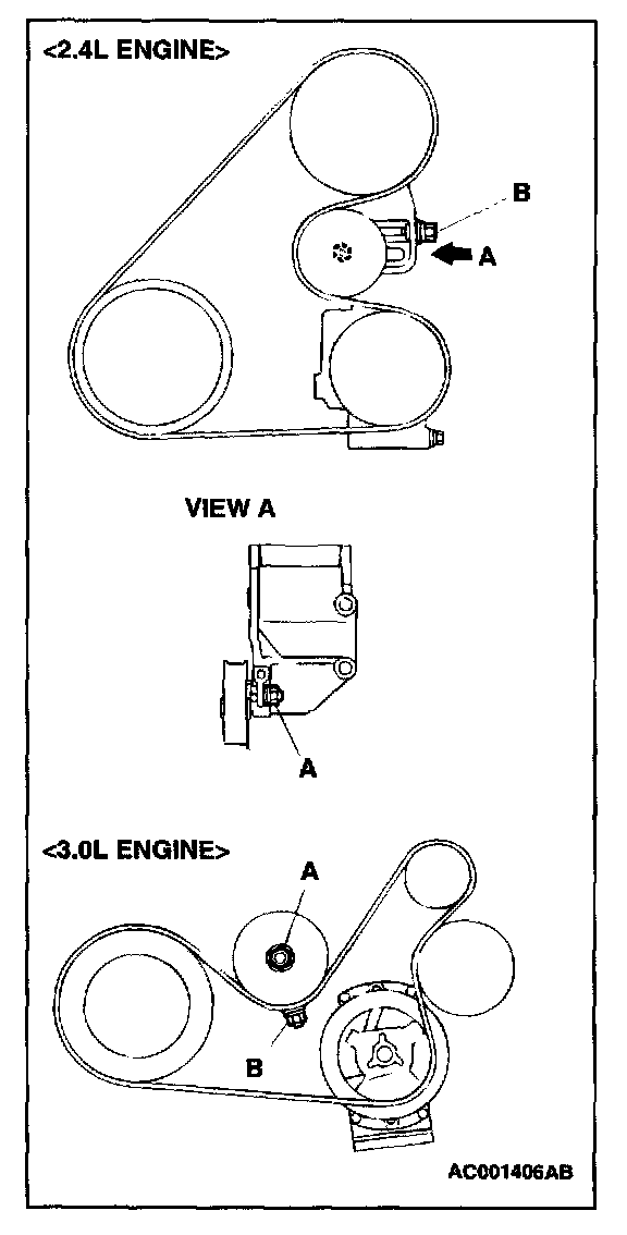 2. Loosen the bolt "B" for adjustment.
