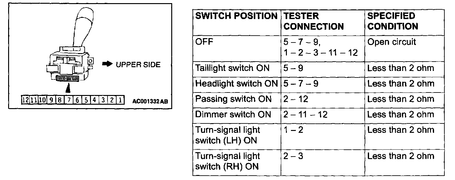 Combination Switch: Testing and Inspection