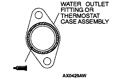 Apply a continuous bead of MITSUBISHI GENUINE Sealant Part number MD970389 or equivalent to the thermostat housing mating surface.