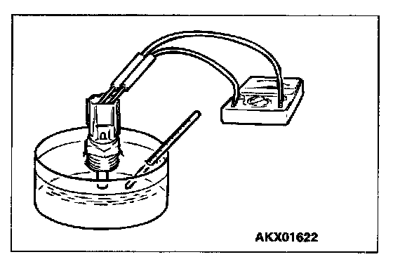 2. With the temperature sensing portion of engine coolant temperature sensor immersed in hot water, check the resistance.