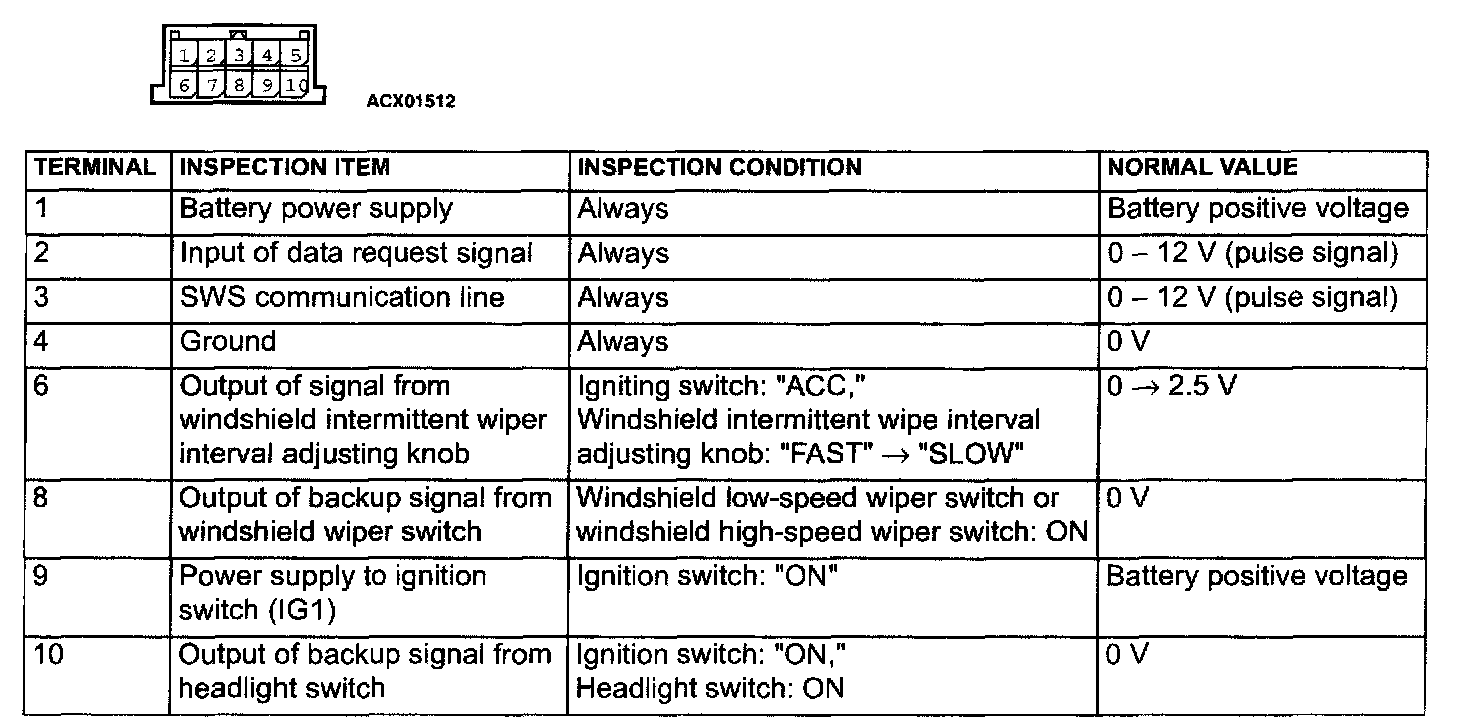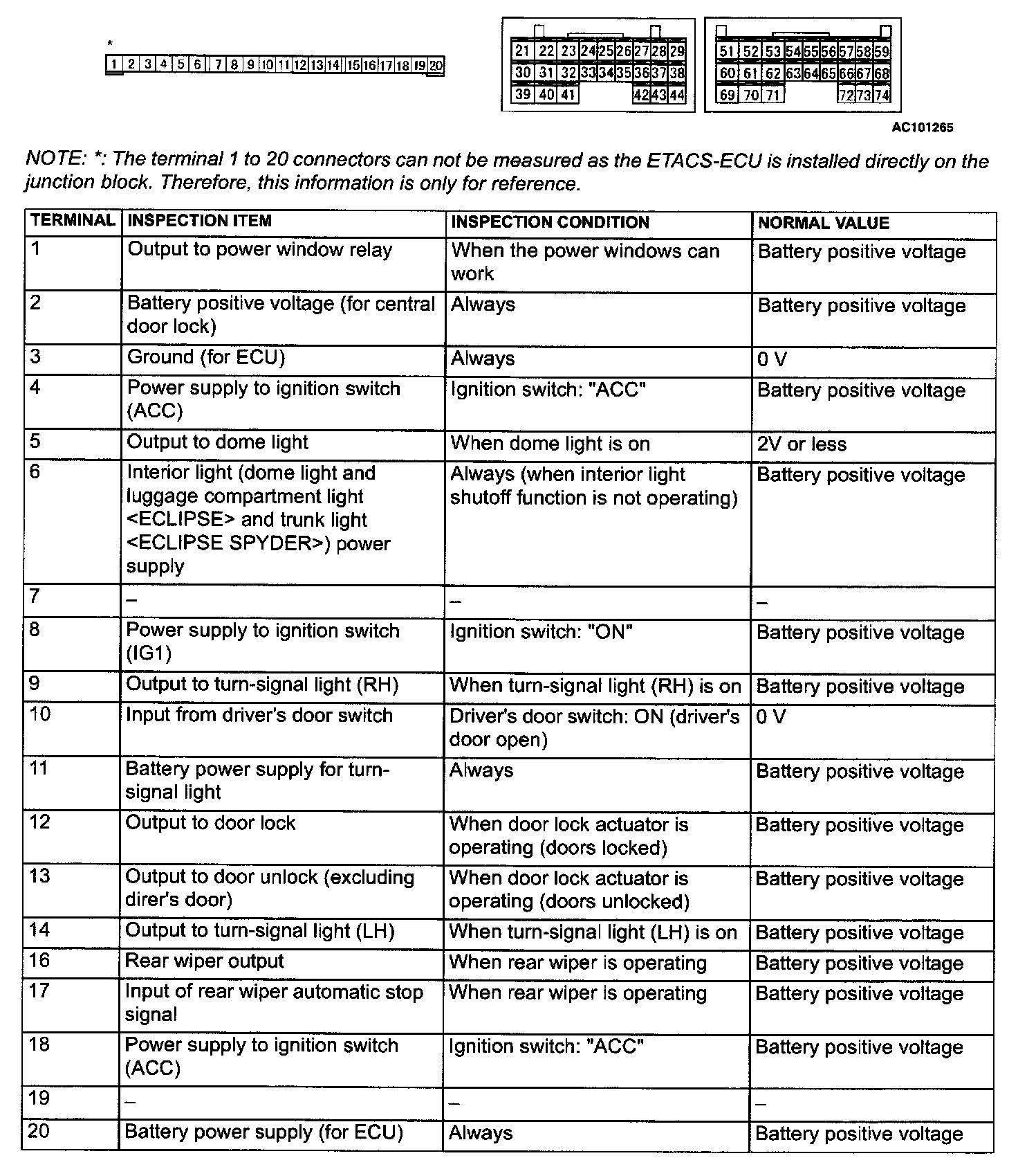 CHECK AT ECU TERMINALETACS-ECU Terminal Arrangement Part 1: