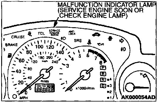 MALFUNCTION INDICATOR LAMP (SERVICE ENGINE SOON OR CHECK ENGINE LAMP)Among the on-board diagnostic items, a Malfunction Indicator Lamp (SERVICE ENGINE SOON or Check Engine Lamp) illuminates to notify the driver of an emission control malfunction. However, when an irregular signal returns to normal and the engine control module (ECM)