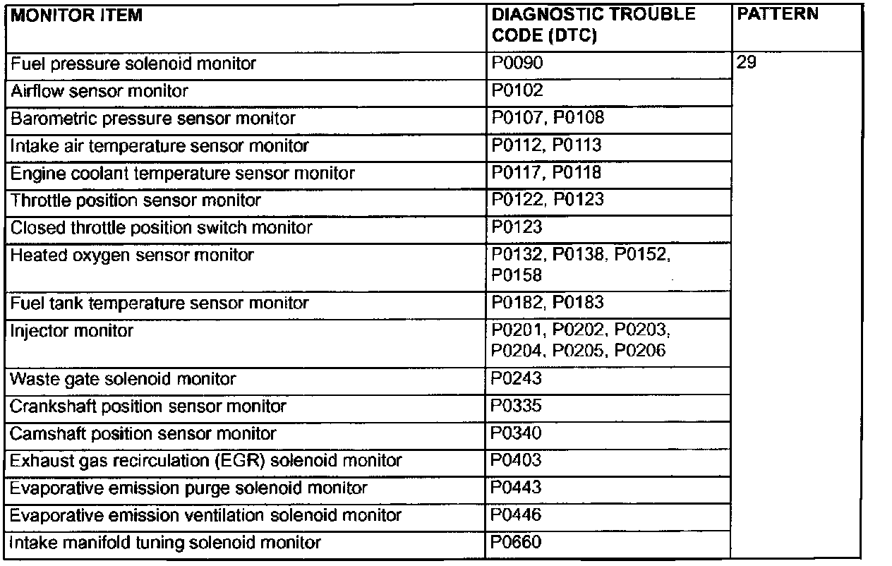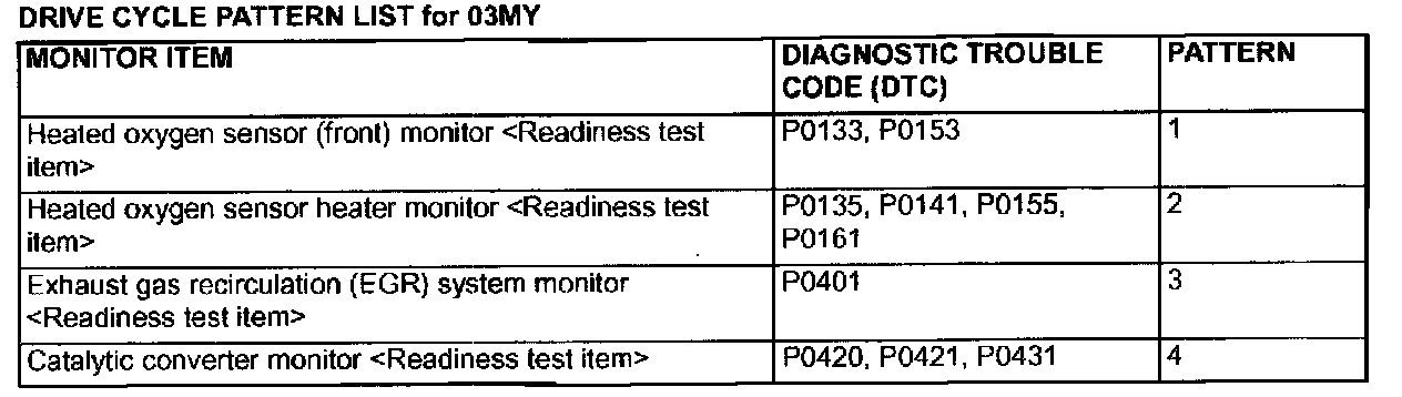 Drive cycle patterns are not established for Vehicle speed sensor monitor (DTC P0500) Closed throttle position switch monitor (DTC P0510). Power steering pressure switch monitor (P0551). Please reference the MUT data list to judge whether these monitor items are normal.