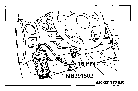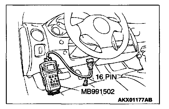 CAUTION: To prevent damage to scan tool MB991502, always turn the ignition switch to the "LOCK" (OFF) position before connecting or disconnecting scan tool MB991502.