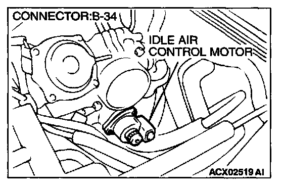 2. Check that the operation sound of the IAC motor can be heard after the ignition is switched to the "ON" position (but without starting the engine).