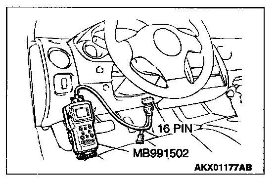 CAUTION: To prevent damage to scan toot MB991502, always turn the ignition switch to the "LOCK" (OFF) position before connecting or disconnecting scan tool MB991502.