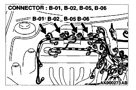 1. Disconnect the injector connector B-01, B-02, B-05, B-06.