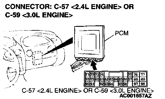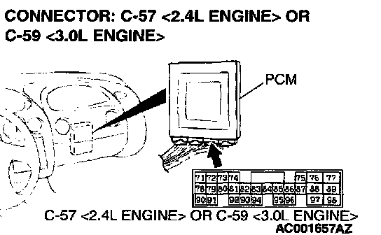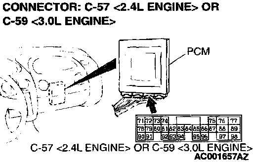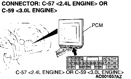 1) Do not disconnect connector C-57 <2.4L Engine> or C-59 <3.0L Engine>.