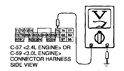 STEP 3. Check the signal voltage at PCM connector C-57 <2.4L Engine> or C-59 <3.0L Engine> by backprobing.