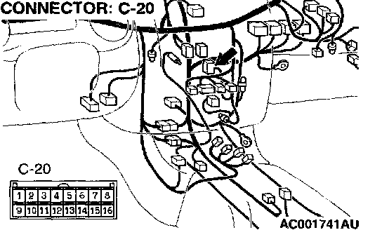 STEP 7. Check connector C-20 at auto-cruise control-ECU connector for damage.