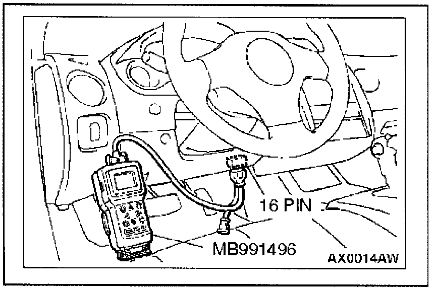 1. Connect scan tool MB991496 to data link connector (16-pin).
