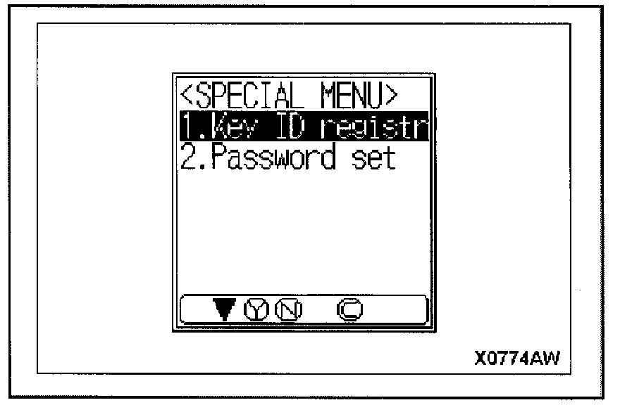 3. This menu is displayed if "SPECIAL FUNCTION" is selected from the immobilizer function menu. Select "Key ID Registr" from the menu, then proceed with the following Key ID Register steps.