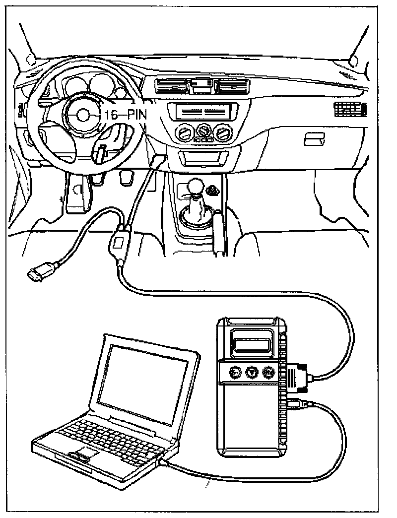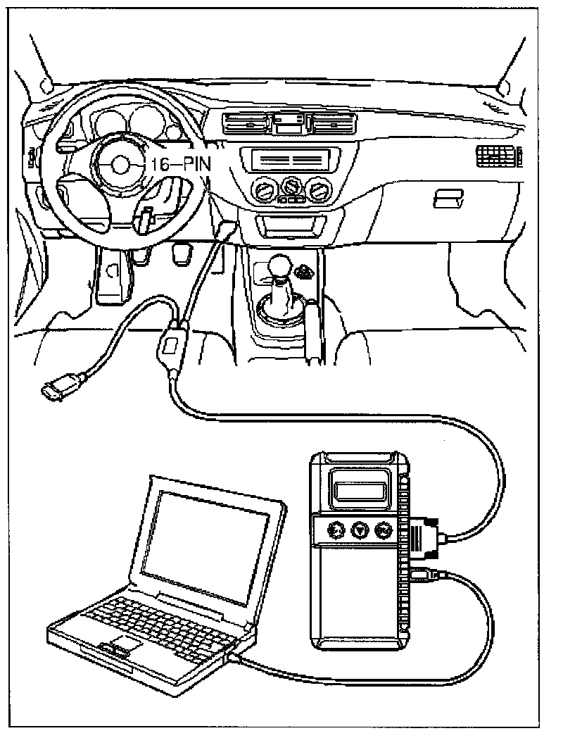 Required Special Tool: MB991496 Scan Tool (MUT-II) with correct ROM-Pack or MB991956 (MUT-III Scan Tool/Laptop).