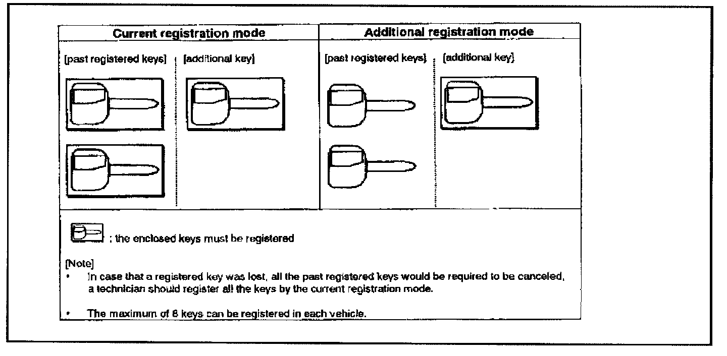 ^ Using the key ID register function will cause all previously-set key IDs to be erased from the immobilizer ECU. All keys need to be registered. Those which have been registered before should be on hand before using this function.
