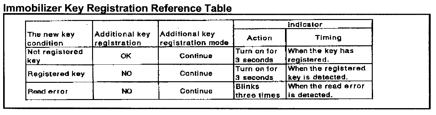 ^ Any newly registered key can start the engine only after that key turns the ignition switch OFF and the engine control relay is OFF. Turning the ignition switch ON again, will then allow the engine to start with the new key.