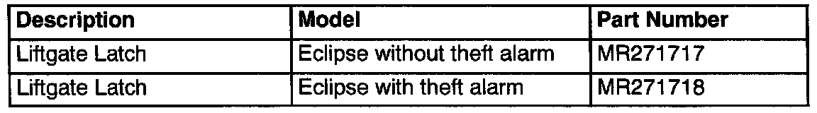 To eliminate this condition, replace the liftgate latch with the new, improved parts listed in the PARTS INFORMATION section of this bulletin. The new latches have bigger springs and a modified latch lever assembly.
