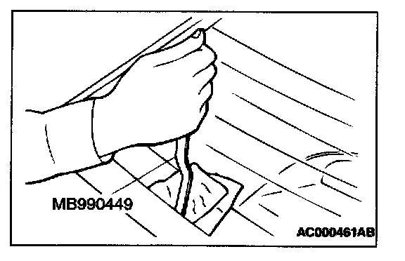 2. Install glass stopper so that it is bent toward inside the liftgate window glass and is firmly sticked.